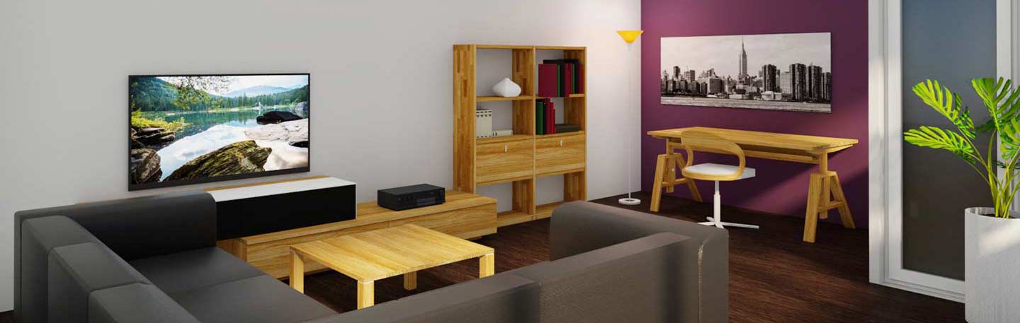 und kann so alle Möbelprogramme in 3D darstellen. Erweitert wird das System mit der Raumplanung und -gestaltung, die fotorealistisch und aus verschiedenen Perspektiven dargestellt werden kann. Der Kunde bekommt so ein sehr realistische Vorstellung von der künftigen Wohneinrichtung.